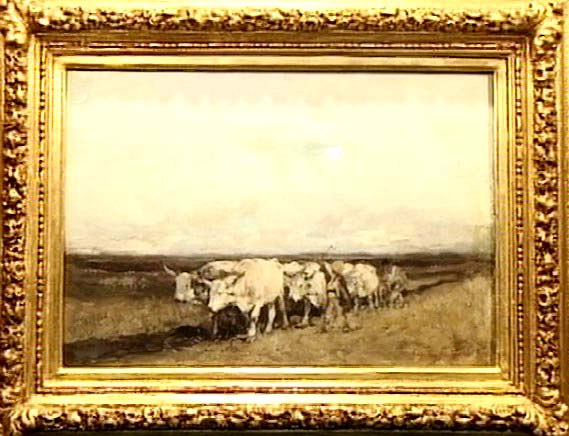 NICOLAE GRIGORESCU (1838-1907), "Caru cu boi", semnat stânga jos cu rosu, ulei pe lemn, 24x44.5cm, autenticitate confirmata de Istoricul de Arta Remus Niculescu